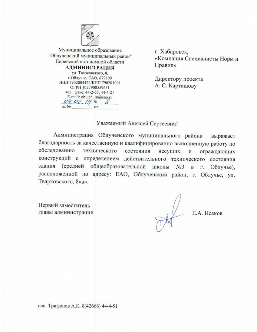 - августе-октябре 2020 г. – по заданию ООО "ВаниноТрансУголь" выполнена техническая экспертиза железобетонных конструкций станции разгрузки вагонов, а также металлических элементов конструкций пересыпной станции на объекте «Строительство и реконструкция инфраструктуры в морском порту Ванино, в бухте Мучке, Хабаровский край (внебюджетные источники)"; произведено обследование технического состояния несущих и ограждающих конструкций с определением действительного технического состояния здания Муниципального Казённого Образовательного Учреждения "Центр образования имени полного кавалера ордена Славы Александра Ивановича Раскопенского» по адресу: ЕАО, Облученский р-н, п. Кульдур, ул. Пионерская, дом 12»; осуществлено обследование комплексного здания учебного корпуса №2 ФГБОУ ВО «Приамурский государственный университет имени Шолом-Алейхема» расположенного по адресу: ЕАО, г. Биробиджан, ул. Пушкина №7.